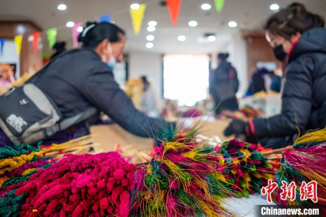 藏歷新年前,在拉薩市城關(guān)區(qū)拉魯社區(qū)、城關(guān)花園等地,不少農(nóng)牧民提前1月左右開始縫制五彩經(jīng)幡進行銷售,當五彩經(jīng)幡“臨時市場”形成了,則預(yù)示著藏歷新年的“腳步”越來越近了。