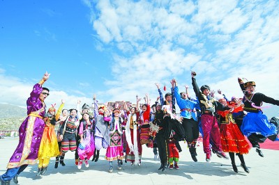 各民族代表歡聚在西藏拉薩布達(dá)拉宮廣場。新華社發(fā)