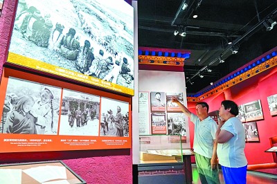 參觀者在西藏民主改革60周年特展前駐足。新華社發(fā)