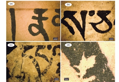 測定藏紙的年代,主要有兩種方法,一種是通過藏文的字體及內(nèi)容判定大致年代,還有一種是碳14測年技術(shù)。論文第一作者、中國科學(xué)院大學(xué)特別研究助理韓賓博士介紹,他們在請藏文專家進行文字預(yù)判的基礎(chǔ)上,在兩個不同的實驗室對藏紙樣品開展了碳14測年。結(jié)果表明該組殘片為12—13世紀(jì)古紙殘片。測年數(shù)據(jù)的一致性,也表明碳14測年技術(shù)可以很好地判定藏紙的年代,為后續(xù)藏紙的研究提供了參考。
