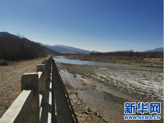 圖為隆子河,兩岸是人工種植的沙棘林,河灘上還能看到泛白的鹽堿地,沙灘已經(jīng)不復存在(2月27日攝)。新華網(wǎng) 殷小燕 攝