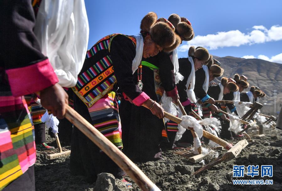 身著盛裝的西藏山南市乃東區(qū)克松社區(qū)居民在進(jìn)行春耕儀式(3月16日攝)。新華社記者 晉美多吉 攝