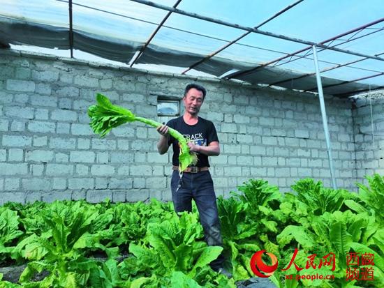 就在他們家大棚門(mén)口,記者看到洛桑頓珠正忙著裝運(yùn),后備廂塞得滿滿當(dāng)當(dāng)。“他們?nèi)撕?,我們家牛吃的都是新鮮菜?!甭迳nD珠操著濃重的鄉(xiāng)音說(shuō)。