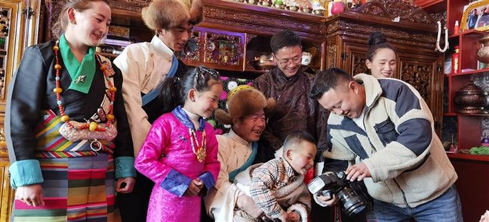 說起這些年里拍攝全家福的場景,索朗多杰很有感慨,“每次去村民家里拍攝全家福照片,他們都會把自己和家人打扮一番,然后其樂融融地坐在鏡頭前,等我按下快門后又開始討論誰拍的最好看。我覺得這樣的場景特別溫馨,拍攝過程中我看到了很多溫暖的瞬間,并通過鏡頭記錄了下來,讓這一刻成為他們全家人的最美好的記憶。”