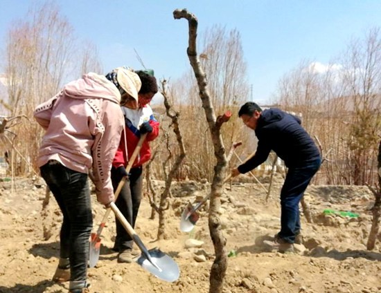 參與栽植活動(dòng)的堅(jiān)參次仁說:“這么大面積種植桃樹,在普蘭歷史上還是第一次,真心希望全部能成活。等以后開花結(jié)果了,我們就能吃上自己種的桃子了?!?/p>