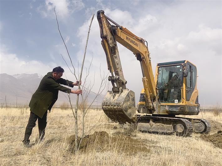 死了那么多樹,為什么還在堅(jiān)持?“那幾年,在這里隨手捧起一把黃土,還會沙化。我必須堅(jiān)持下來?!彼骼柿_布說。2015年春天,索朗羅布再次貸款40余萬元購買了一臺挖掘機(jī),準(zhǔn)備修建水渠和挖坑。同年3月,索朗羅布又一次獨(dú)自種樹苗,母親卓瑪央金心疼壞了,于是帶著村里姐妹們前來幫忙。不僅如此,她們還帶來了防止草原鼠啃食樹根的土方法,用塑料瓶圍著樹根包一圈,既能防止草原鼠搞破壞,還能節(jié)省成本。