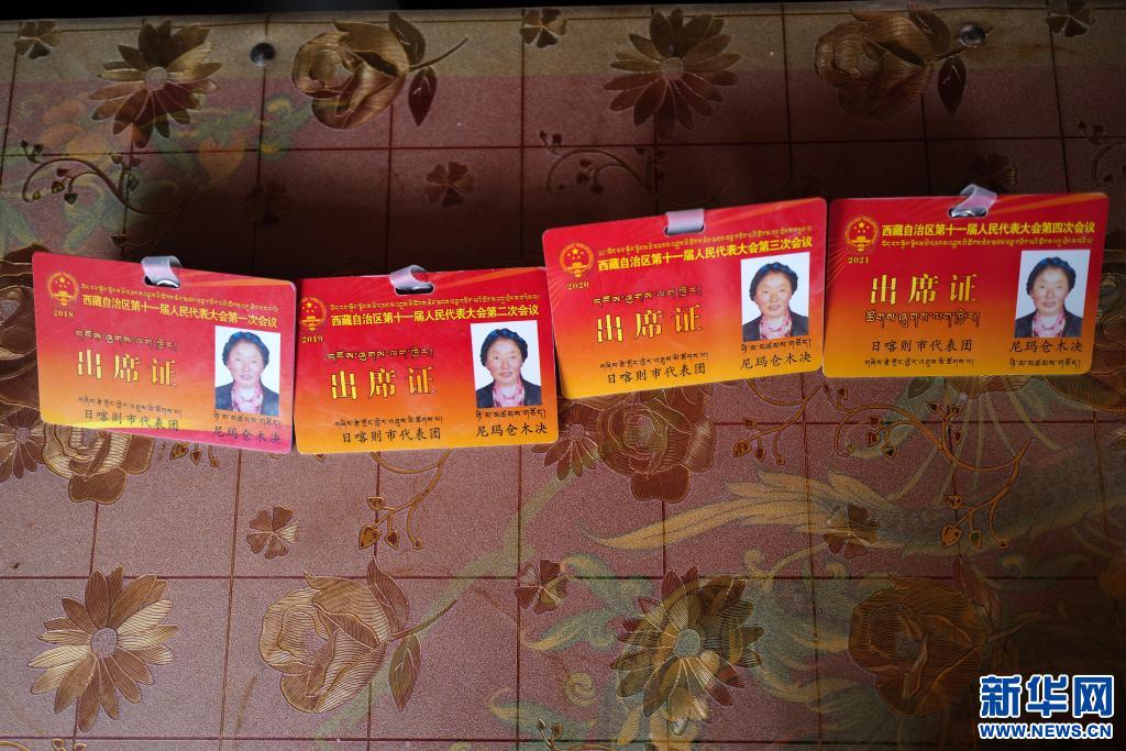 這是尼瑪倉木決的人大代表出席證(3月20日攝)。新華社記者 孫瑞博 攝