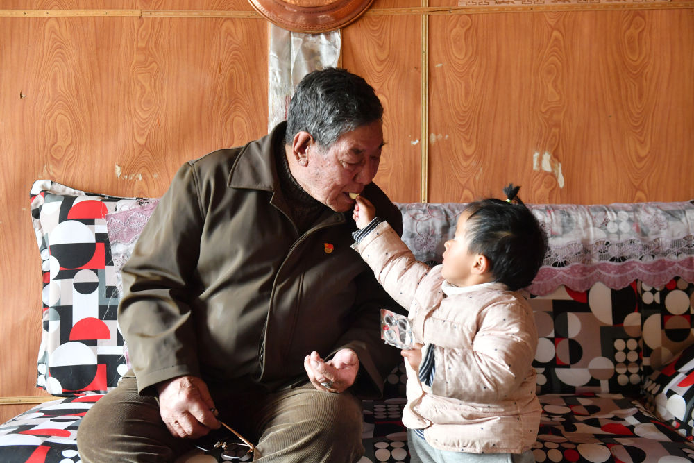 索朗楊佩(右)和老伴兒卓嘎在位于米林縣單嘎努覺村的家中留影(3月30日攝)。