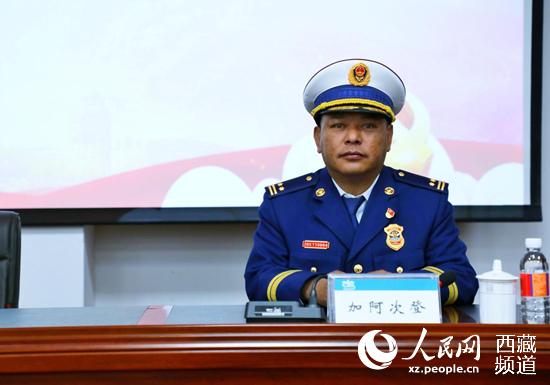 拉薩市消防救援支隊副支隊長加阿次登講話。人民網(wǎng) 李海霞攝