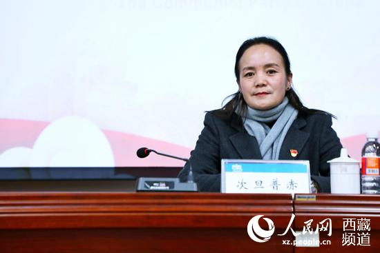 西藏自治區(qū)圖書館館長次旦普赤講話。人民網(wǎng) 李海霞攝