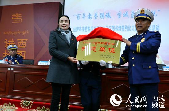 西藏自治區(qū)圖書館館長次旦普赤,副館長旦增卓瑪、邊巴次仁,拉薩市消防救援支隊副支隊長加阿次登、政治部主任羅桑念扎等領(lǐng)導(dǎo)出席參加活動。拉薩市消防救援支隊60余名指戰(zhàn)員代表及西藏自治區(qū)圖書館職工代表在現(xiàn)場參加了簽約儀式。