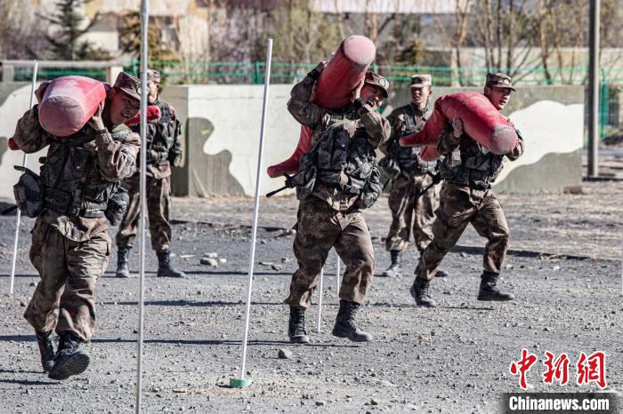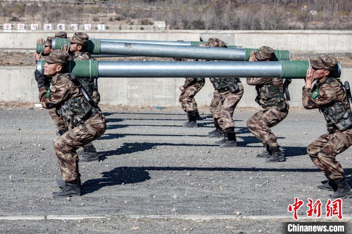 圖為西藏軍區(qū)某旅新兵進行圓木負重訓練。西藏軍區(qū)某旅 攝