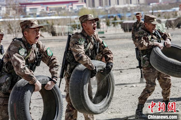 圖為西藏軍區(qū)某旅新兵進行舉輪胎訓練。西藏軍區(qū)某旅 攝