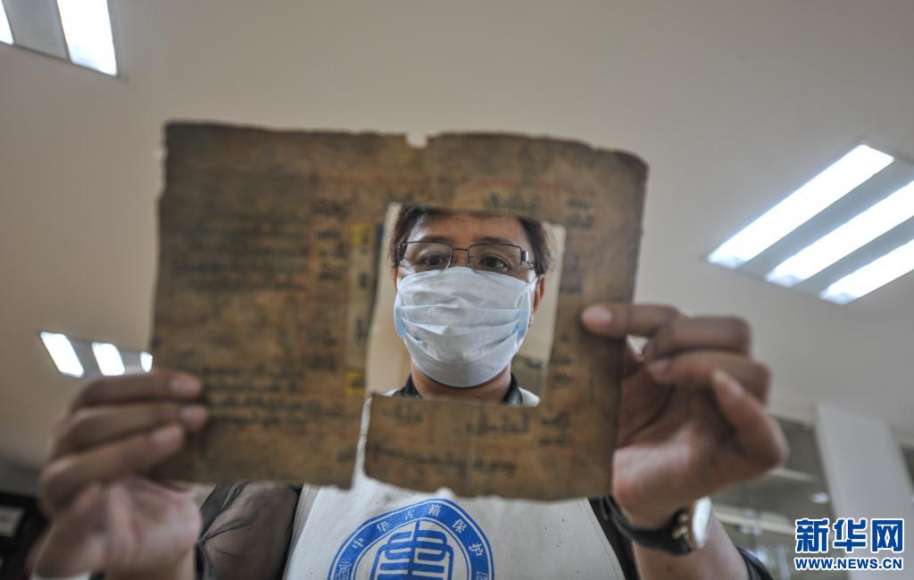 一葉、兩葉、三葉,這一天央拉共完成了五葉破損古籍的前期修復(fù)工作。據(jù)悉,待壓平、風(fēng)干的古籍定型后,她還將對(duì)修復(fù)后多余的補(bǔ)紙進(jìn)行剪裁等工作。