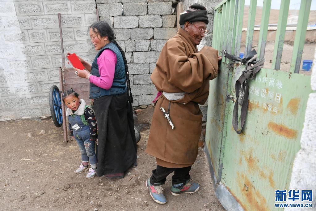 索朗多杰老人和家人在院子里合影(4月15日攝)。新華社記者 孫瑞博 攝