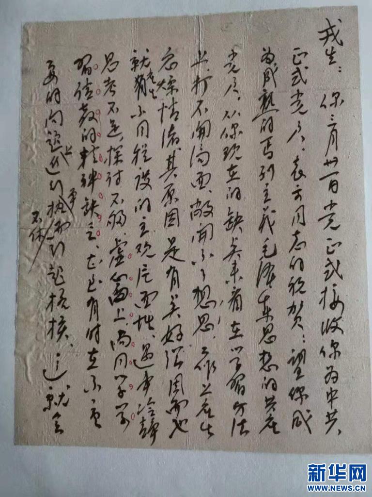 “戎生,你這幾年來,學(xué)習(xí)進步一定很好。我們天天在這里希望你進步……我們身體很好,工作也很順利,不要掛念。祝你和你弟弟身體好,并祝進步!”