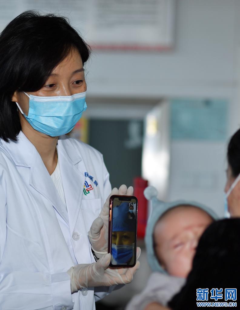 6月1日,在拉薩市人民醫(yī)院,來(lái)自北京的兒科專家(左)幫助一名家長(zhǎng)與在北京的兒科專家視頻連線。新華社記者 覺(jué)果 攝