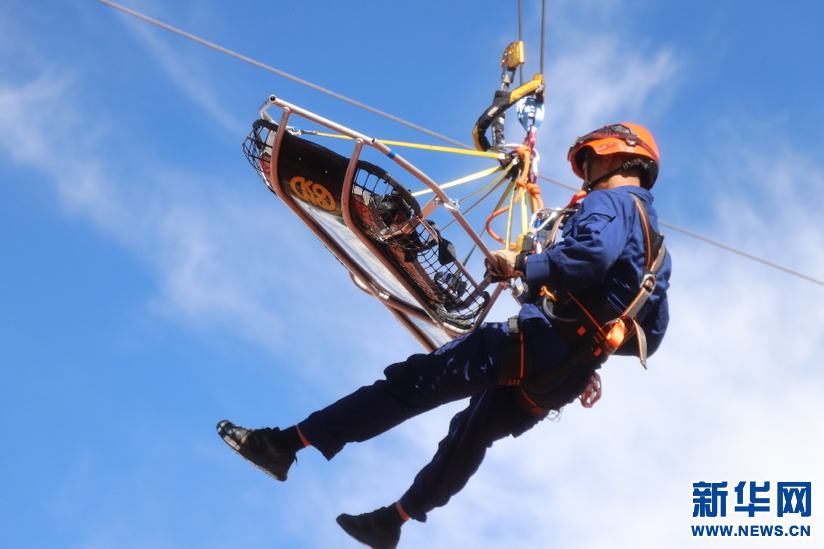 隊員正在進行繩索救援訓練(6月6日攝)。(新華網(wǎng)發(fā) 劉論剛攝)