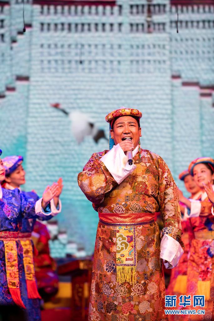 6月12日,在西藏拉薩市的自治區(qū)群藝館,演員表演藏戲《吉祥歡歌》。新華社記者 孫瑞博 攝