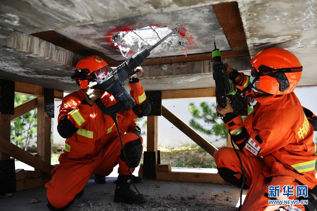 6月15日,參訓(xùn)學(xué)員進(jìn)行矩形間接安全破拆實(shí)際操作展示。新華社記者 孫瑞博 攝