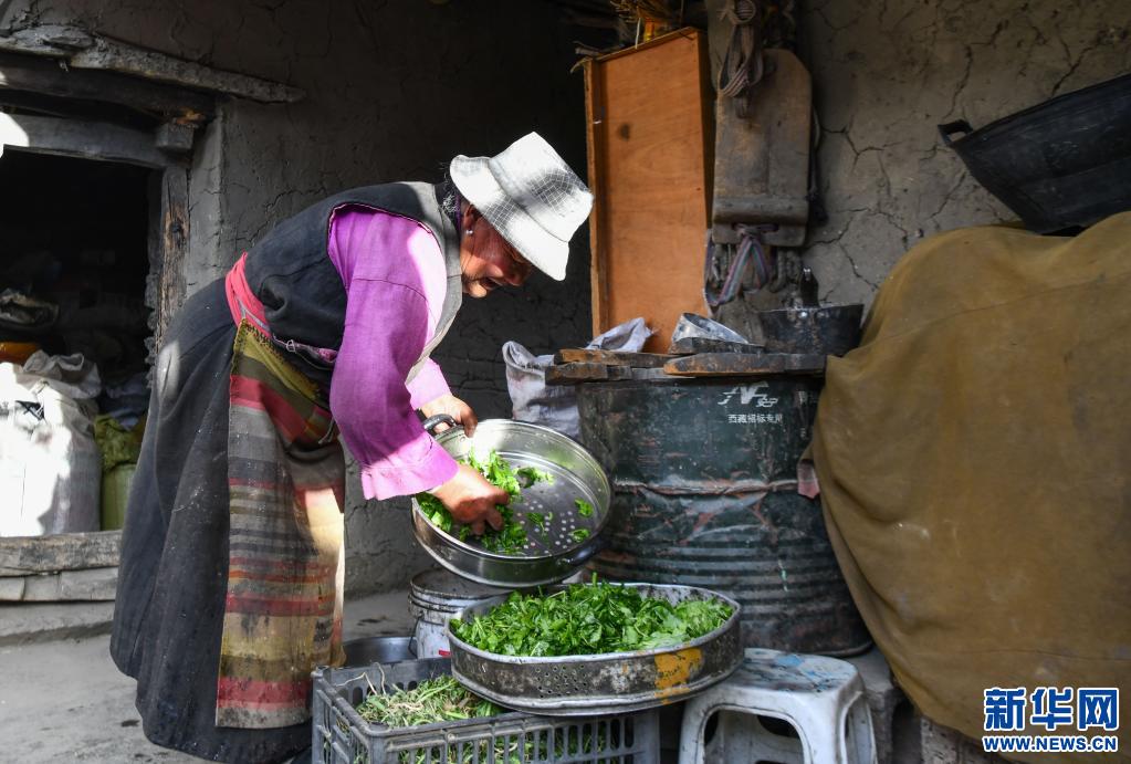 次旦拉姆在洗菜,準(zhǔn)備晚飯(6月3日攝)。新華社記者 普布扎西 攝