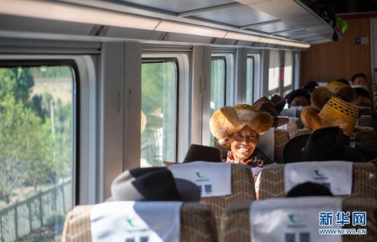 來自山南市貢嘎縣杰德秀鎮(zhèn)杰德秀村的巴珠,今年68歲,他一會兒從車窗眼望高山峽谷,一會兒摸摸車內(nèi)現(xiàn)代化設(shè)施,這是他頭一次坐火車?!皬?fù)興號和牛車比起來,像是在飛翔。”他笑著說。