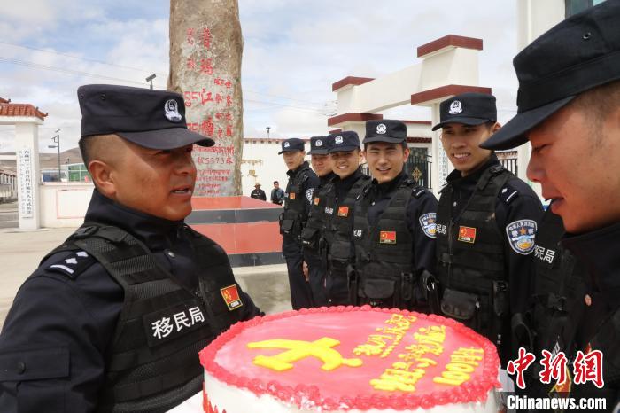 在全國海拔最高的行政鄉(xiāng)普瑪江塘,邊境派出所組織民警在轄區(qū)海拔5600米的崗布冰川開展邊境巡邏工作,并巧手制作了慶祝黨的100年主題生日蛋糕,用實(shí)際行動向建黨100周年獻(xiàn)禮。