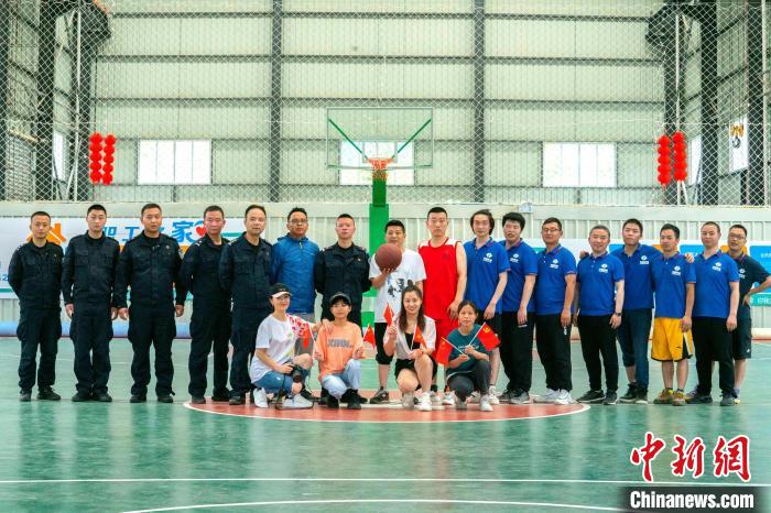 圖為友誼籃球賽后的隊(duì)員合影?!〗旁频?攝