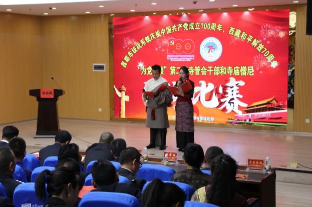 7月2日,昌都市委統(tǒng)戰(zhàn)部以慶祝中國共產(chǎn)黨成立100周年、西藏和平解放70周年“為黨贊頌”為主題,舉辦全市第二屆寺管會干部和僧尼演講比賽,市委常委、統(tǒng)戰(zhàn)部長,市政協(xié)黨組副書記澤仁俊美出席,市委宗教工作領導小組成員單位負責人和強巴林寺、卡若區(qū)寺管會干部代表、僧尼代表觀看了比賽。市委組織部、市委宣傳部、市委統(tǒng)戰(zhàn)部、市民委、市文化局、市宗教局等單位負責人擔任評委。