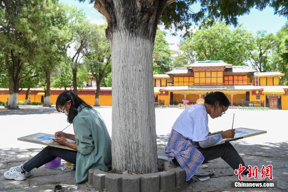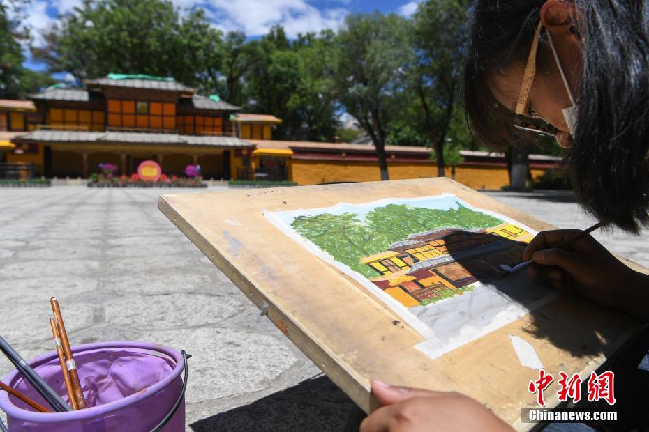 7月8日,西藏大學(xué)建筑系學(xué)生前往西藏自治區(qū)拉薩市城關(guān)區(qū)羅布林卡進(jìn)行建筑美術(shù)實習(xí)。在7天的實習(xí)中,學(xué)生們將在哲蚌寺、色拉寺等地,把西藏民族特色建筑、風(fēng)景一幅幅手繪在紙上。圖為西藏大學(xué)建筑系學(xué)生手繪羅布林卡風(fēng)景。 中新社記者 貢嘎來松 攝