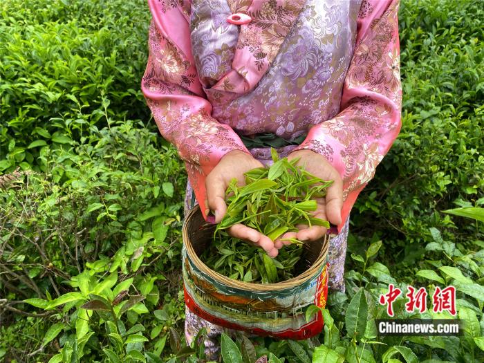 藏族姑娘展示采來的茶葉,每斤可以換回20元。彭寧鈴 攝