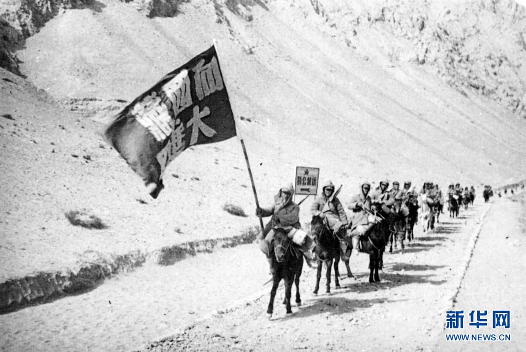 先遣連130多名官兵向西藏阿里進軍(資料照片)。新華社發(fā)(進藏英雄先遣連紀念館供圖)