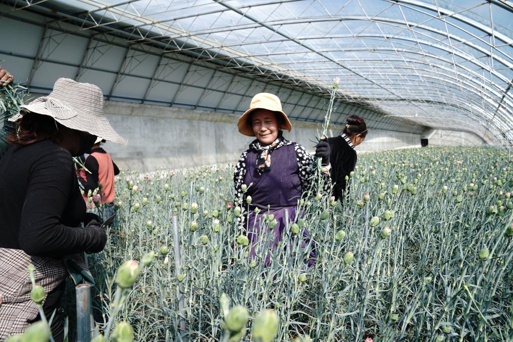 拉薩市堆龍德慶區(qū)群眾在蔬菜花卉產(chǎn)業(yè)園內勞作(2021年3月4日攝)。新華社記者 劉洪明 攝