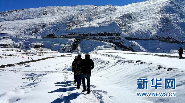 長江設(shè)計團(tuán)隊在海拔4300米雪域高原上開展勘測工作。新華網(wǎng)發(fā)