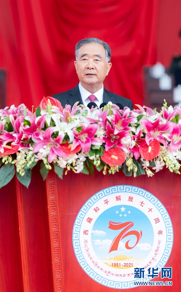 8月19日,慶祝西藏和平解放70周年大會在拉薩隆重舉行。中共中央政治局常委、全國政協(xié)主席、中央代表團(tuán)團(tuán)長汪洋出席慶祝大會并講話。新華社記者 翟健嵐 攝