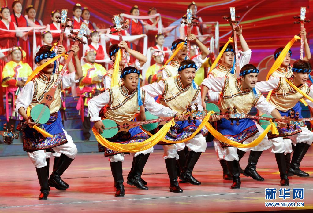 8月19日,慶祝西藏和平解放70周年文藝演出《西藏兒女心向黨》在拉薩西藏人民會(huì)堂精彩上演。新華社記者 黃敬文 攝