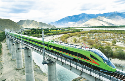 復(fù)興號(hào)列車(chē)行駛在西藏山南市境內(nèi)。新華社記者 覺(jué) 果攝