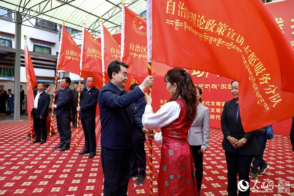 向理論政策宣講志愿服務分隊授旗。人民網(wǎng) 次仁羅布攝