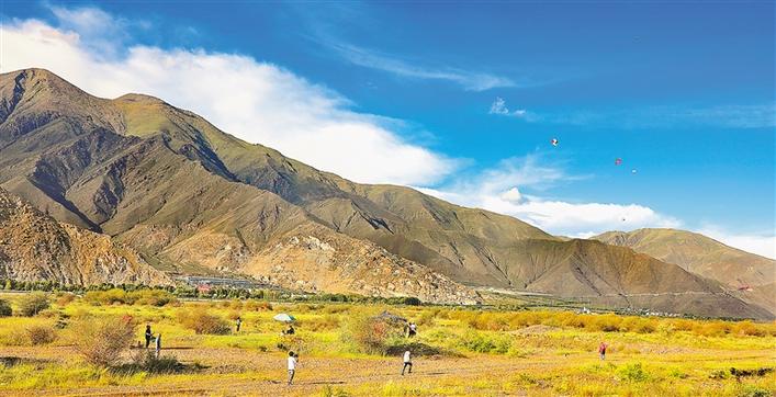 每年金秋時節(jié),在拉薩城的上空,便會出現(xiàn)千百只風(fēng)箏漫天飛舞、爭奇斗艷的景觀。在碧藍(lán)的天空下,那些形狀各異、如鷹似燕的風(fēng)箏,時而高飛、時而低落、時而旋轉(zhuǎn)、時而打斗,一旁觀戰(zhàn)或正在放風(fēng)箏的人仰頭觀看,歡呼聲、嘆息聲、助威聲此起彼伏,很是熱鬧。