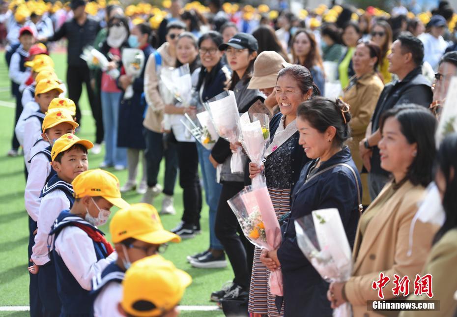 9月10日是第37個(gè)教師節(jié),西藏拉薩市第一小學(xué)舉行了以“譜團(tuán)結(jié)新篇 育桃李芬芳 感教師恩情”為主題的慶祝活動(dòng)。學(xué)生以敬禮、獻(xiàn)花、擁抱等方式,表達(dá)對(duì)老師的感恩之情。中新社記者 貢嘎來松 攝