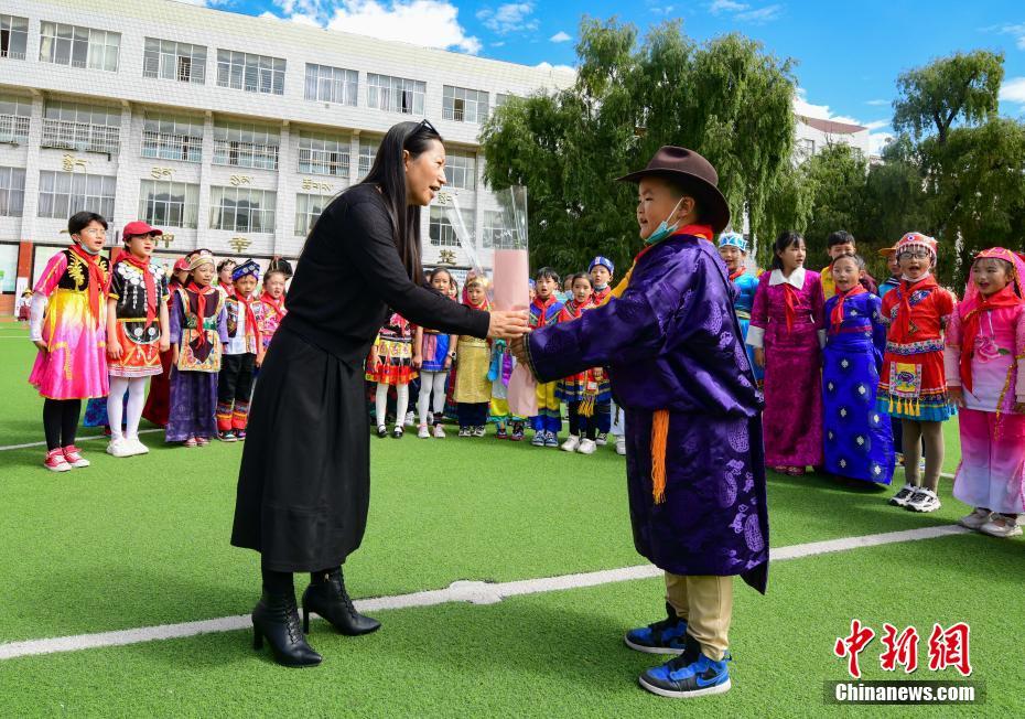 9月10日是第37個(gè)教師節(jié),西藏拉薩市第一小學(xué)舉行了以“譜團(tuán)結(jié)新篇 育桃李芬芳 感教師恩情”為主題的慶?;顒?dòng)。學(xué)生以敬禮、獻(xiàn)花、擁抱等方式,表達(dá)對(duì)老師的感恩之情。中新社記者 貢嘎來松 攝
