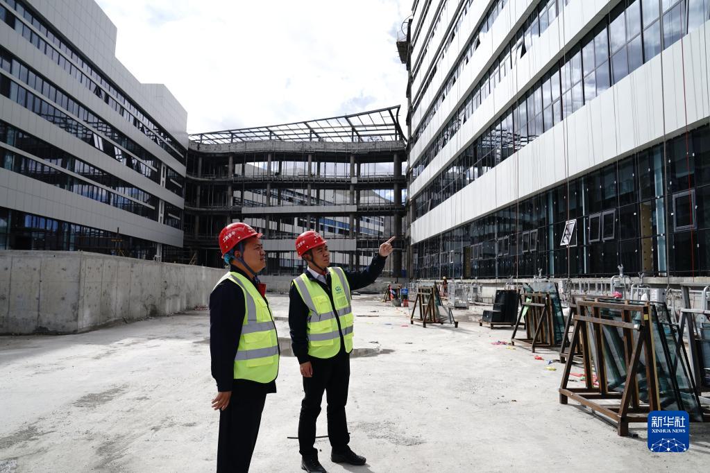 電焊聲和鋼管的碰撞聲此起彼伏,中秋節(jié)前夕,位于拉薩市堆龍德慶區(qū)的西藏自治區(qū)醫(yī)院項目施工現(xiàn)場,500多名工人正進行作業(yè)。戴著安全帽走在建筑樓層,時而駐足詢問,34歲的張磊不敢怠慢任何一道工序。