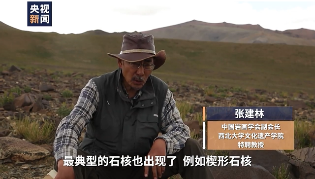 中國巖畫學(xué)會副會長、西北大學(xué)文化遺產(chǎn)學(xué)院特聘教授 張建林:最典型的石核也出現(xiàn)了,例如楔形石核。年代不好判斷,我們對現(xiàn)在藏北地區(qū)的細(xì)石器,現(xiàn)在還沒有這個年代上的框架,我們只是分布區(qū)域上,細(xì)石器地點(diǎn)發(fā)現(xiàn)得非常多,從那曲一直到阿里。