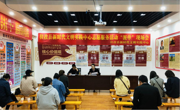 志愿服務(wù)活動(dòng)“派單”現(xiàn)場會。圖片由拉孜縣宣傳部提供