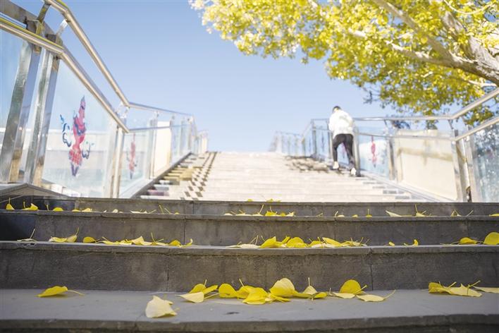陽光溫暖地包裹著大地,穿過草木,穿過人群,在地上折射出好看的光影。樹木一排排整齊站立著,樹葉時(shí)不時(shí)隨風(fēng)飄落,落在地面,鋪?zhàn)饕坏亟鹕牡靥海腥俗哌^,發(fā)出“沙沙”的聲響,伴著人們的說笑聲,格外動(dòng)聽美妙。