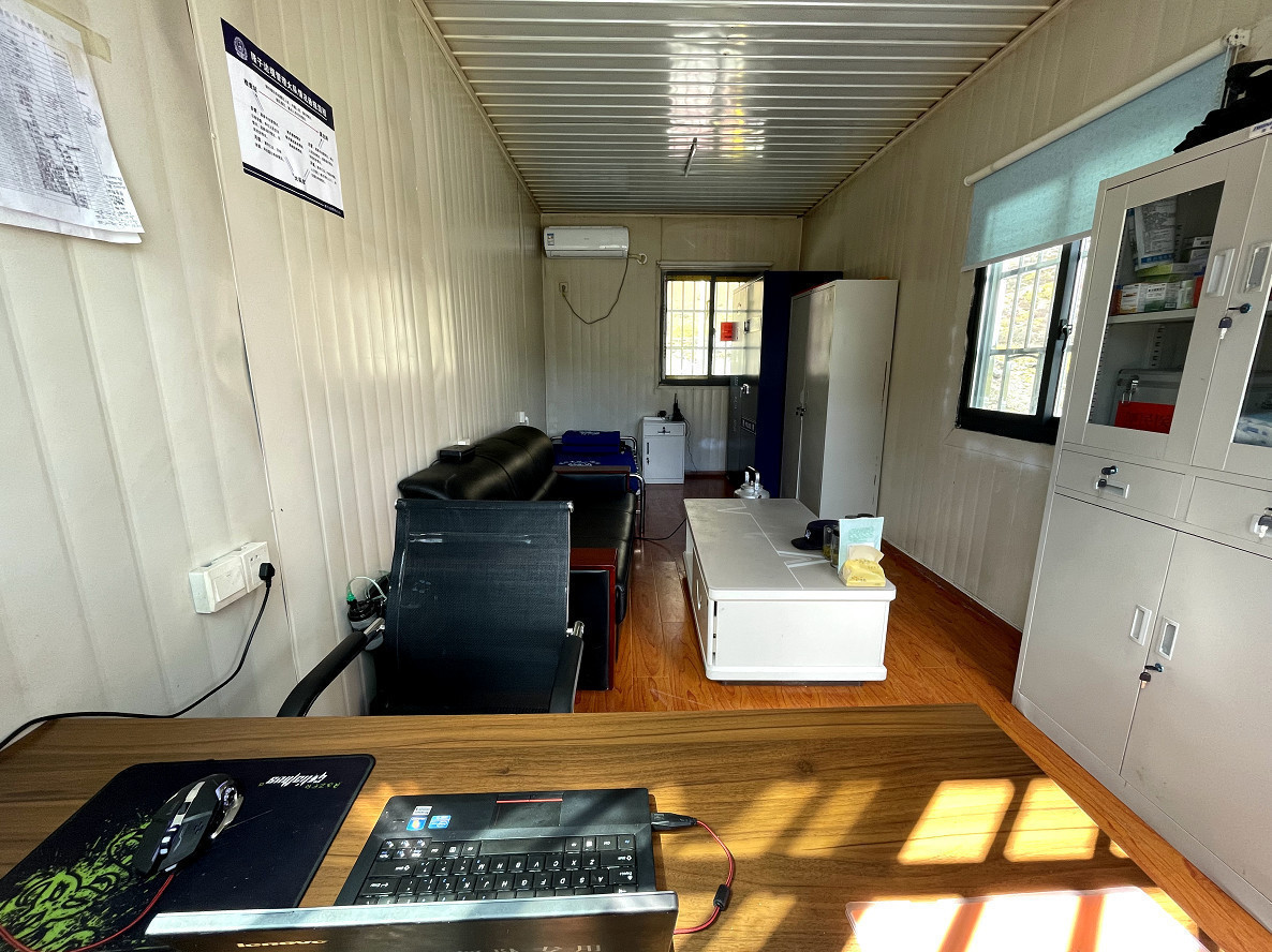 “最開始,我們是住在旁邊那個鐵皮房子里,晚上睡覺時還漏風(fēng),取暖基本靠“抖”,睡在被窩里縮成一團,直到睡熱了之后才能把身子伸直。在這里執(zhí)勤就沒有脫下過毛衣,哪怕是在有太陽的白天,換衣服要等到回到駐地換勤以后。后來支隊為我們修建了這個過渡性的移動方艙,空調(diào)、烤火爐、熱水器、室內(nèi)廁所、冰箱、沙發(fā)等設(shè)備都有了,只要把門關(guān)好了,取暖器和空調(diào)一開,室內(nèi)就像家里那么暖和。說實話,這條件的跟之前比,就是鳥槍換炮”。周建馳繼續(xù)補充到。