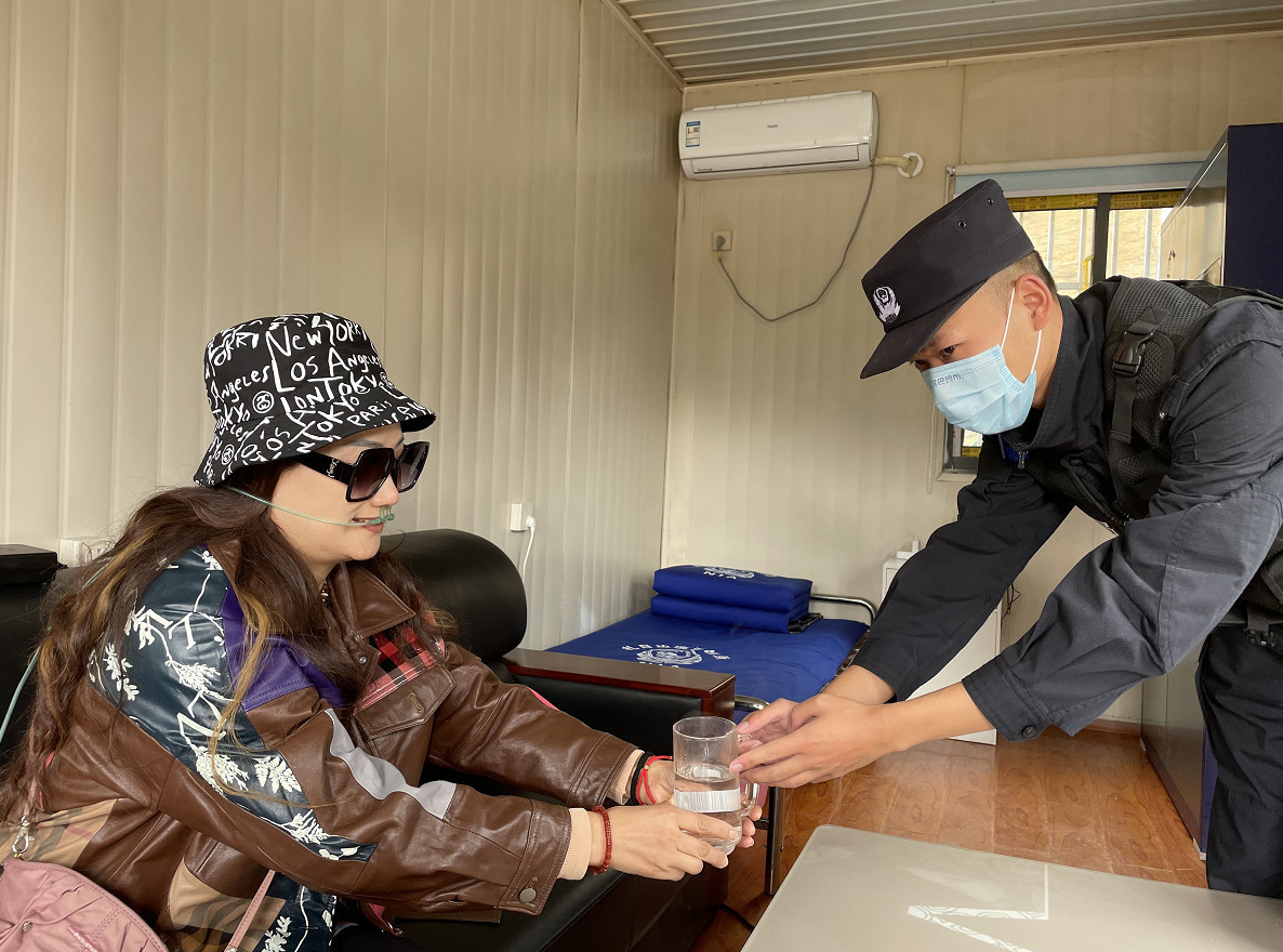 檢查站民警除了檢查出入邊境管理區(qū)人員和車輛以外,還設(shè)置了綠色便民服務(wù)區(qū),專門為長途駕駛的游客提供飲用熱水和一些應(yīng)對高原反應(yīng)的藥品,以及為有吸氧需求的游客提供便攜式制氧機。據(jù)不完全統(tǒng)計,自上點開展工作兩年以來,曲桑邊境檢查站共計為游客提供物資藥品幫助240余人次,幫助救援被困游客50余人,獲得了過往群眾游客的一致好評。
