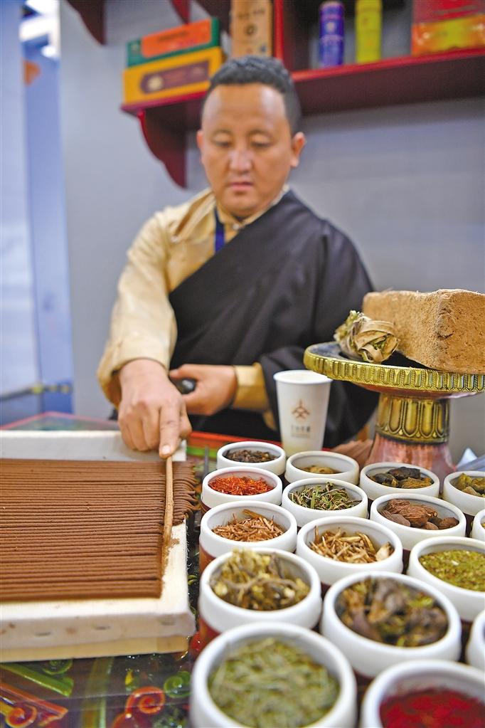 圖為非遺傳承人展示藏香制作過(guò)程。記者 旦增西旦 攝