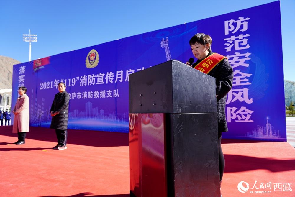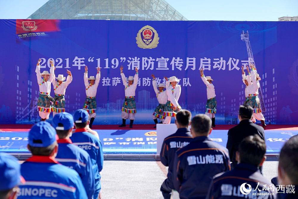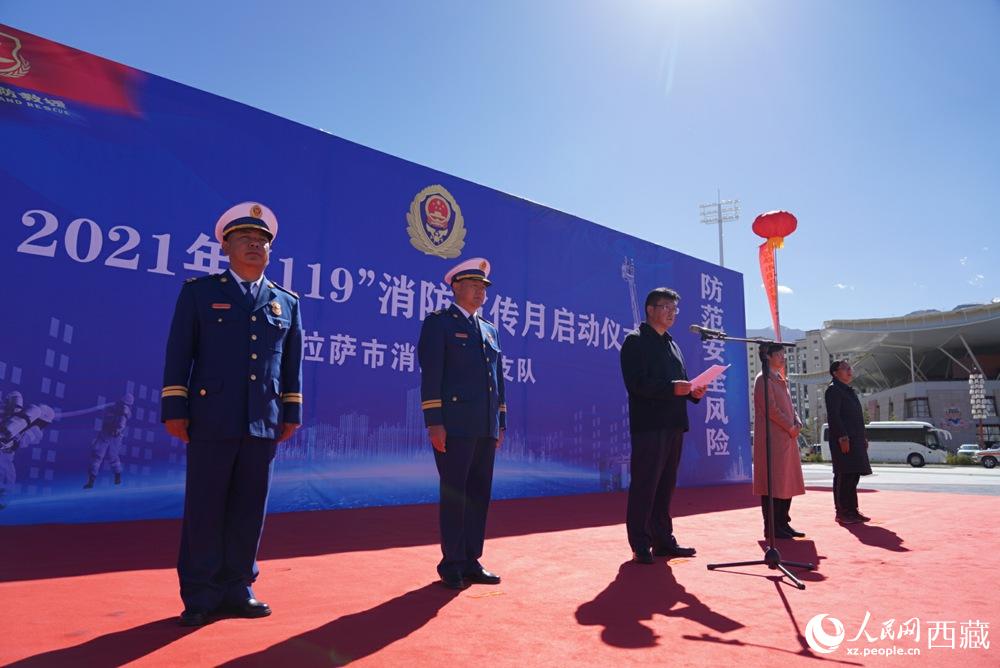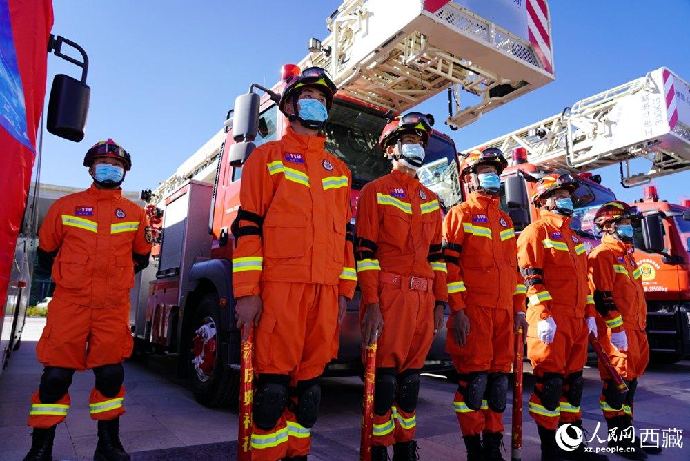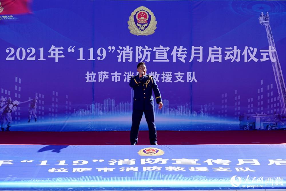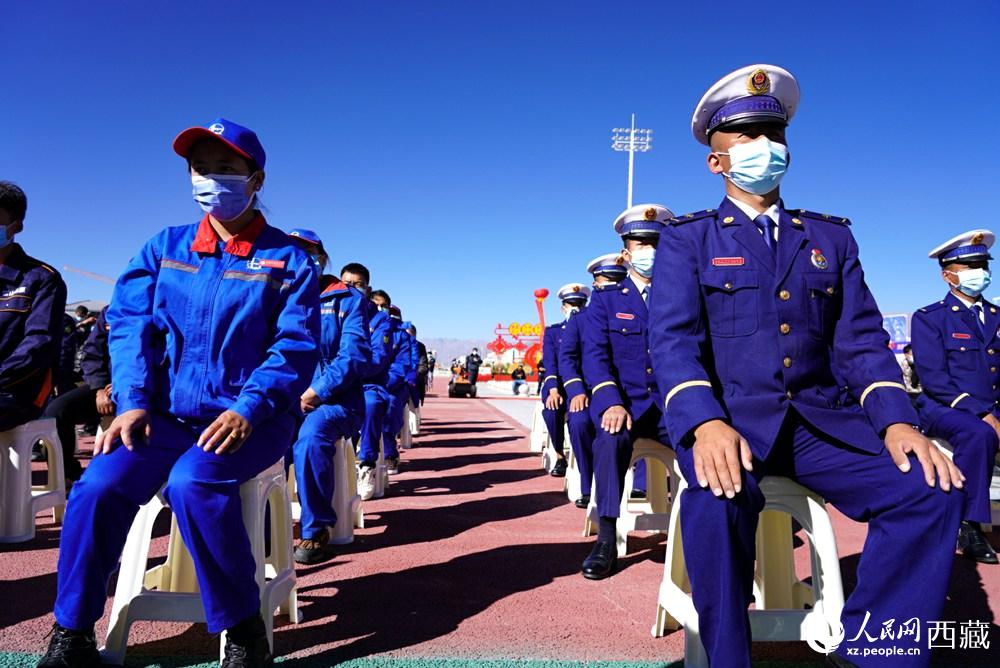 拉薩市2021年“119”消防宣傳月啟動(dòng)儀式現(xiàn)場。人民網(wǎng) 次仁羅布