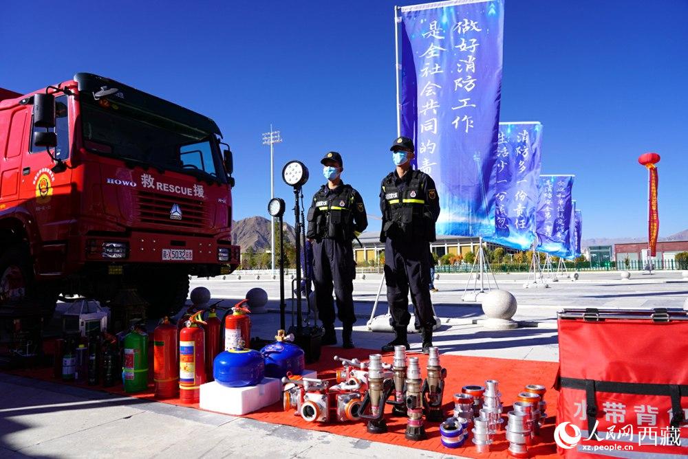 拉薩市2021年“119”消防宣傳月啟動(dòng)儀式現(xiàn)場。人民網(wǎng) 次仁羅布攝